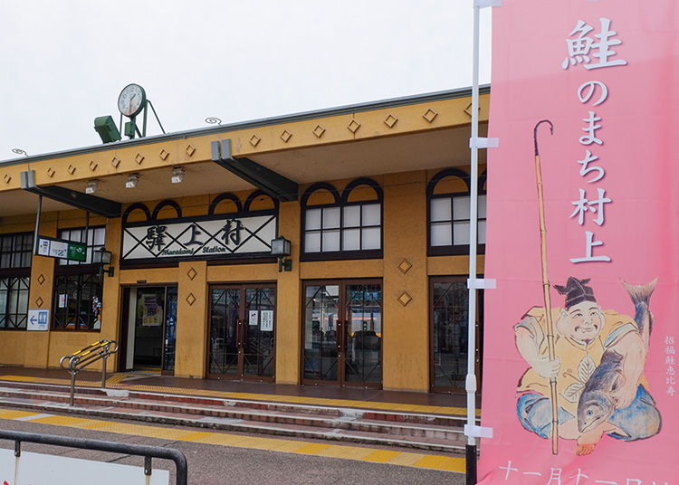 到访的时候正逢秋鲑肥美,从踏出电车的那一刻起就吸收到了许多和村上的鲑鱼相关的情报。「村上の鮭漁」是村上当地重要的经济产业,也是足以象征村上当地自然物产丰盛的美丽图腾之一,我还听说村上这边的在地人可以将一条鲑鱼从头到尾、从鱼皮到内脏甚至于鱼骨都可以变化出100道以上的珍馐美味,让我对接下来即将展开的行程满怀期待!