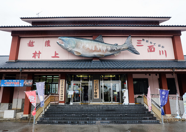 观赏完鲑鱼捞补过程之后,一定还要去造访位于三面川河岸旁的「イヨボヤ會館」!这是一间为了让游客们可以更完整更清楚地了解鲑鱼的生态所设置的生态博物馆,同时也是日本最早设立的鲑鱼博物馆。