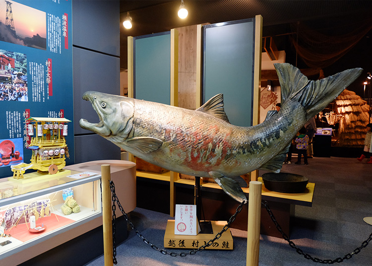 另外,在这个博物馆内也收藏了关于鲑鱼保育的珍贵历史史料,村上当地的人民在江户时代便有了如何将这个上天所赐与的恩惠成为永续的自然资产的基石流传下去的意识,并且也致力实践于鲑鱼的孵化和养育,因此参观这个博物馆不但能满足获取学习鲑鱼生态的知识,还能教导大家养成保护自然环境生态之心。