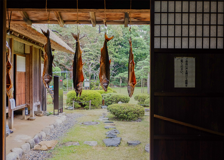 村上还有一个享富盛名的名产「 塩引き鮭」(盐渍鱼干)。村上的盐渍鱼干遵循传统古法仅以盐巴腌渍发酵、辅以温度与湿度的适切调节风干熟成,鱼干芳香不腥臭,鱼肉紧实、鱼脂也转化得更为甘甜,浓厚的鲜味全浓缩至鱼肉之中。自古便是村上当地居民用于度过漫长寒冬食材的强力后盾,直至现今更是一年四季餐桌上所熟悉的美味佳肴来源。