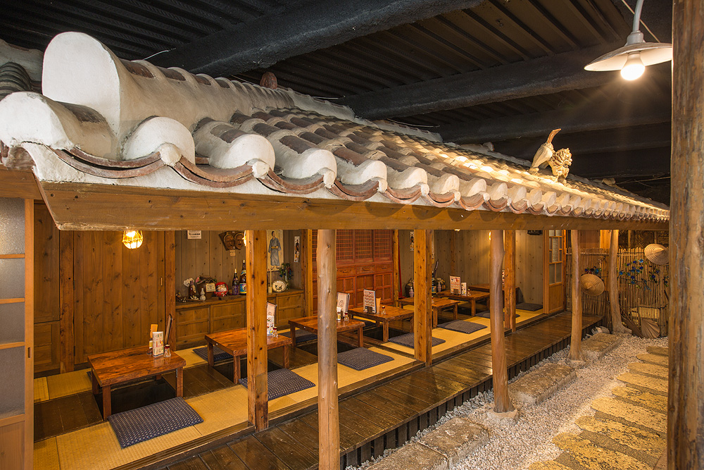 从冲绳最繁华的国际通一脚踏入店里,那些早期令人怀念的冲绳村落生活立刻延展开来,模仿古民宅以及牛舍的座位,让观光客不只有美食,还能享受店内气氛。