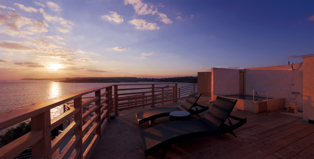 最上层名为「方丈庵」,是冲绳非常稀有的露天私汤,面向海洋设计,完全无遮蔽物的天空之汤。享受着被天空蓝摇染的汤泉,呼吸被海浪的韵律所融解。像是宇宙浩瀚无尽的空间般地敞开,尽情享受身心与自然调和的「无垢的时间」。