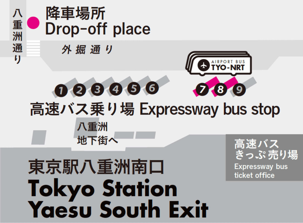 新巴士路线将会统一上下车地点,东京车站出发的巴士,必须到八重洲南口的JR高速巴士站(JR高速バス乗り场)第7、8号候车处上车,银座站始发的车次也能选择从银座站上车。机场出发的巴士,每班都会停靠八重洲中央口前八重洲通的「降车场所」让旅客下车。