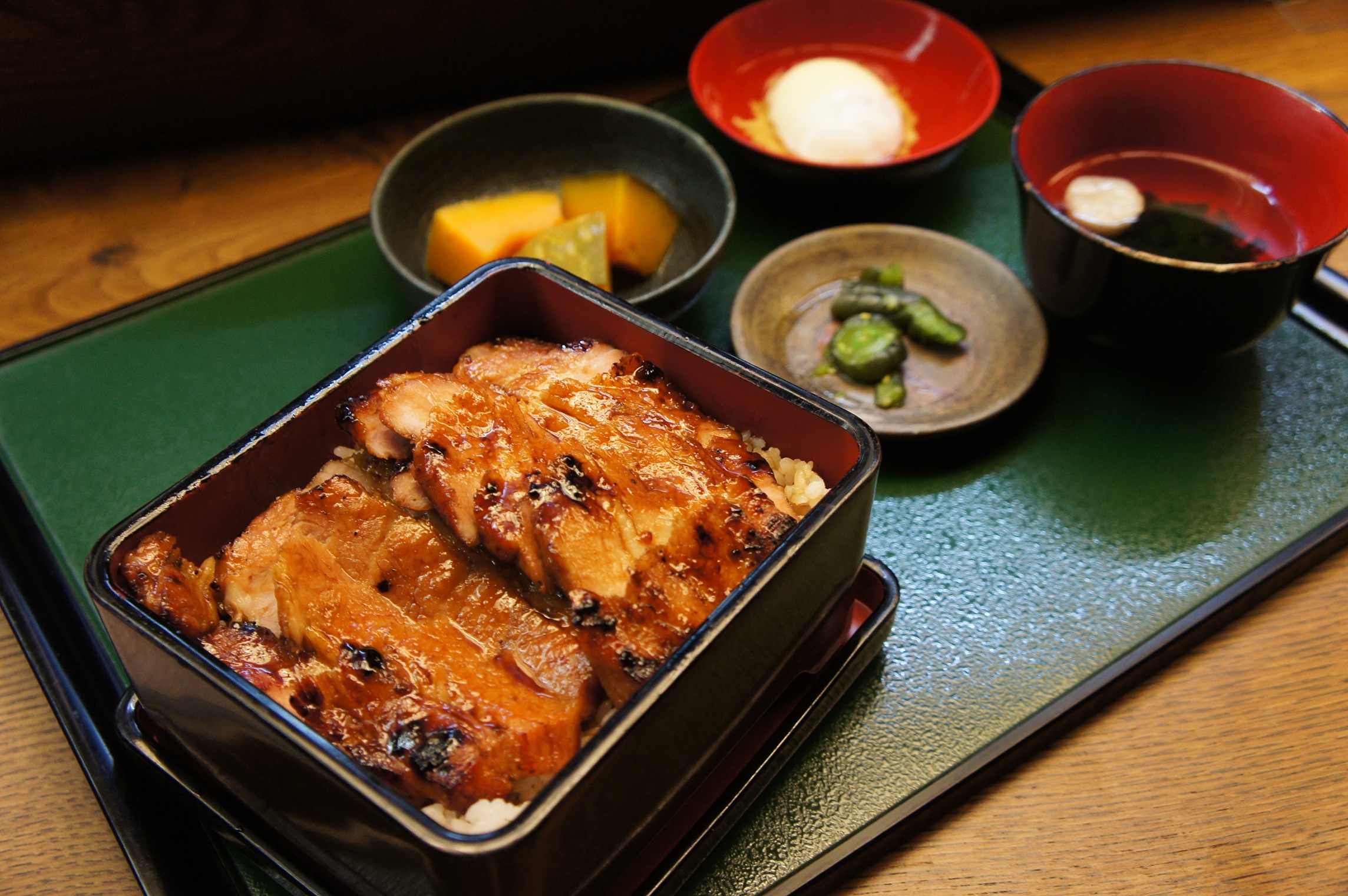 冈山市区内有家当地人推荐的故乡美食, 以「豚蒲烧」(ぶたかば)闻名。豚蒲的「豚」指的是猪肉,儿「蒲」则是蒲烧鳗的「蒲」, 因此简单来说就是用跟烤蒲烧鳗一样的料理方式,去料理出来的烧烤猪肉美食。豚蒲烧肉定食定价约日币八○○圆,涂上浓厚的酱汁去烧烤出来的猪肉, 香甜脆感十足!此外,还推荐日币一○○○多圆左右的ひつまぶた定食。这定食吃法有三步骤。(一)第一碗先单纯品尝竹筒里的饭。(二)第二碗将葱花、海苔、芝麻加入,混合以后享用。(三)将汤汁注入最后的饭里,变成茶泡饭享用。等于就是同时享用到三种口味啦!