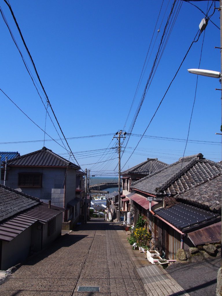 站在地势高的地方往下看,视线沿笔直的斜坡穿越村庄,毫无阻碍的一路下滑,最后得以见海。那股视觉的穿透感,让伫立在斜坡上的我,顿时感觉心旷神怡。