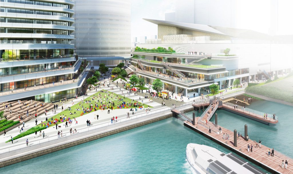 「竹芝 WATERS takeshiba」分成四大区块,包括百货「atre竹芝」、「mesm Tokyo」饭店、「JR东日本四季剧场(春)(秋)」及「公共空间:草坪及看台」。
