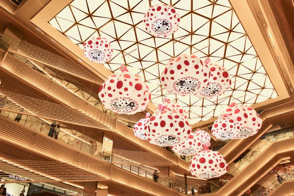 在GSIX的中庭,迎来了草间婆婆的作品!从室内中庭的屋顶,悬吊草间弥生创作的红点南瓜,期间限定装饰展示,直到2018年2月25日为止。