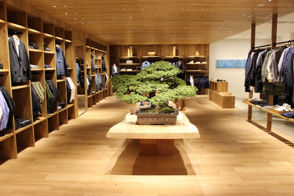 在建筑外观的设计上,以日式建筑传统的「屋簷」和「暖帘」(门帘)作为意向打造而成,希望传递出从四面八方迎接客人到访的概念。随着季节、潮流与店舖的变化,暖帘也可应变替换,呈现出不同的感觉。极简俐落的造型延续到室内,舍弃过多抢眼的装饰,取而代之的是用季节性的花卉,来直接呈现出四季更迭的日本风情。