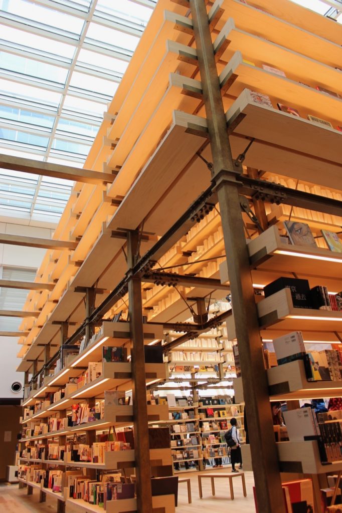 四个顶天立地的大书架,采用的是日本建筑「橹」为概念所做成,高达六公尺。