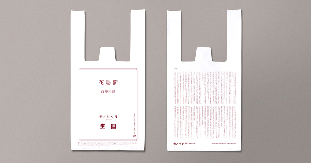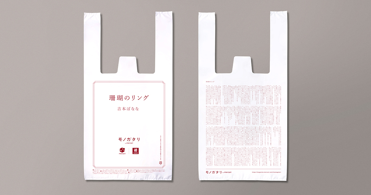 Natural Lawson和mercari从合作的十位作家中,精选出吉本芭娜娜、伊坂幸太郎、筒井康隆三位名家的作品,将他们的极短篇小说印制到塑胶袋上,从6月24日起,分三天于指定时间内,在Natural Lawson店铺购物就免费发送。