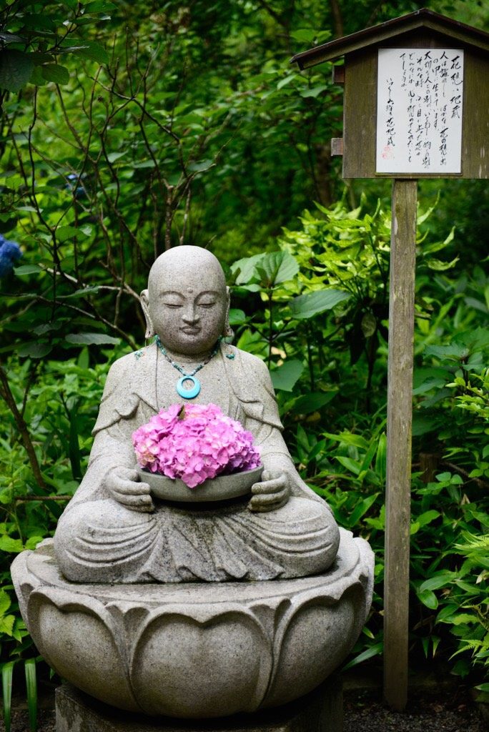 据传建于1160年的明月院又被称为紫阳花寺,院内栽种了约2500株的紫阳花(绣球花),