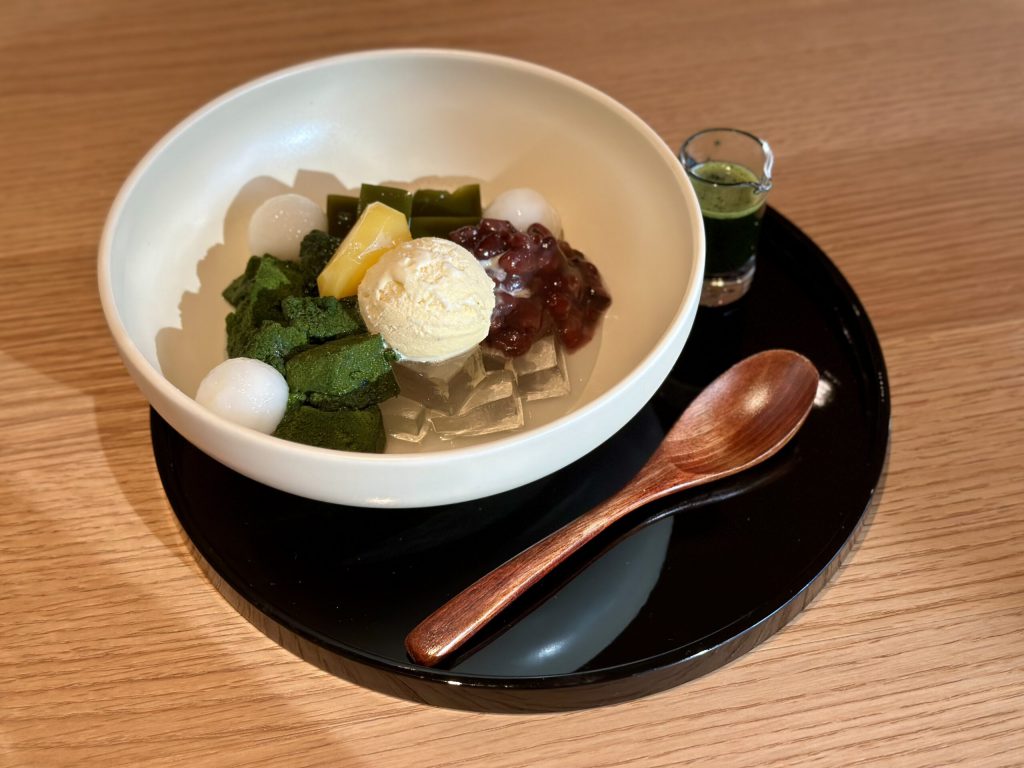 餐饮部分,推出以京都老字号米商「八代目仪兵卫」严选米所制的「茶香御膳(茶まぶし御膳)」,以及每日现场捣制的「现捣麻糬(つきたて饼)」,搭配香气层次丰富的茶饮,体现日本茶文化与食材美学的融合。