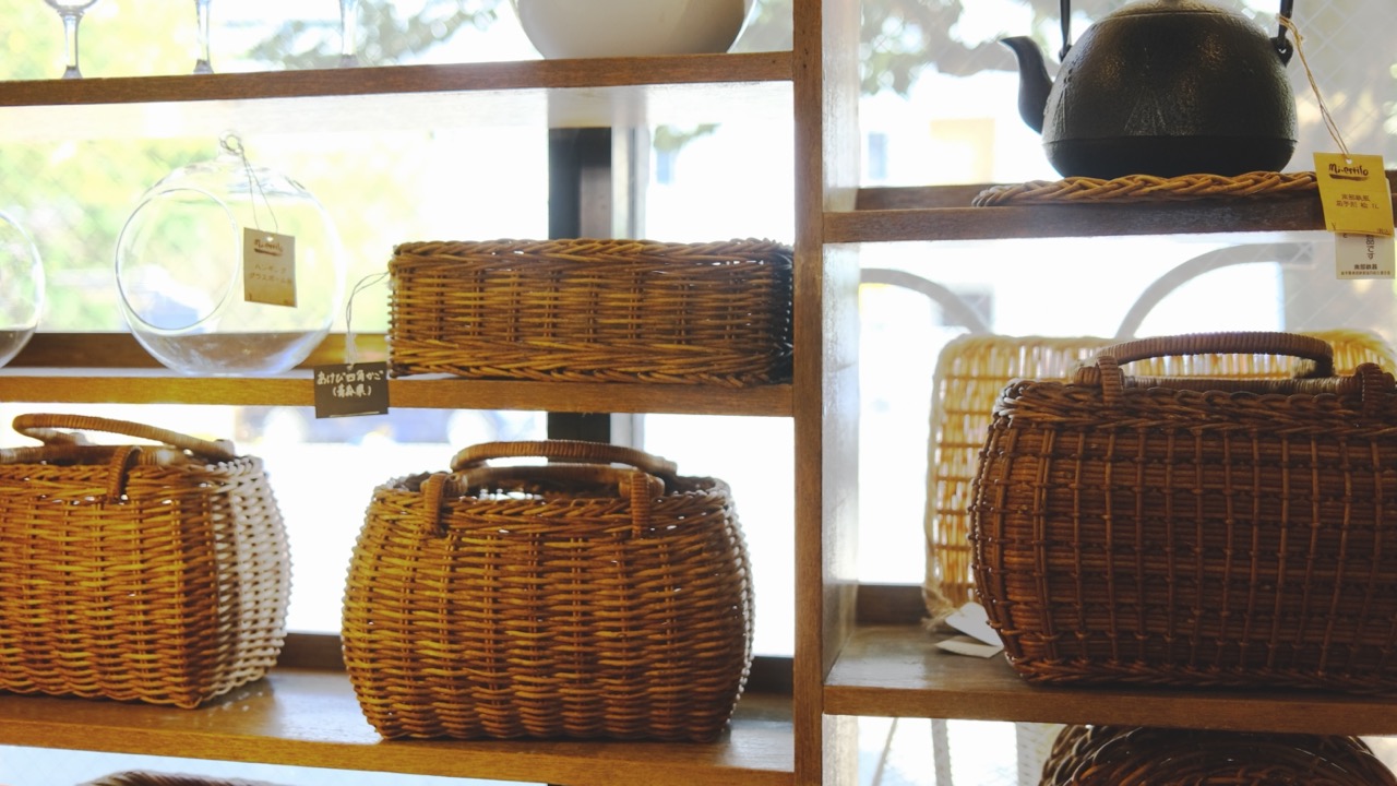 店内有由于店主喜爱,而挑选的编织篮控不能错过的天然素材(山葡萄、藤、木通果)编织而成的各式生活用品,各有不同特色。拜访当天,受到店主桥口一家温暖的接待,在这里购买物件的话,还会多了一份回忆带回去。