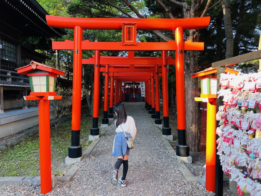 本殿旁的朱红色鸟居隧道,通往的是小巧而宁静的「丰受稻荷神社(豊受稲荷神社)」,主要祈求财运与丰衣足食。每到秋天,鸟居两侧的银杏转为金黄,与朱红鸟居交织出迷人的季节色彩,是函馆秋天不可错过的小角落。