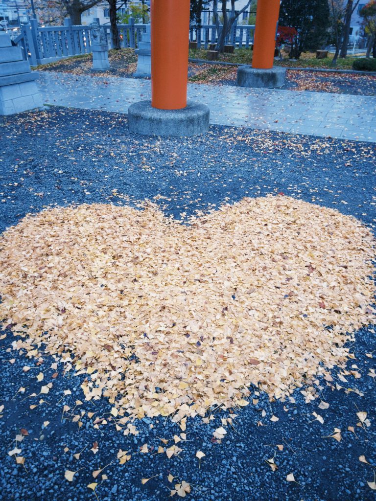 秋天时节,神社前的巨大银杏树染成金黄,是函馆著名的秋季秘境之一。当银杏落叶成金黄地毯时,神社偶会将其布置成爱心形状等,让秋天的汤仓神社更增添一份浪漫!