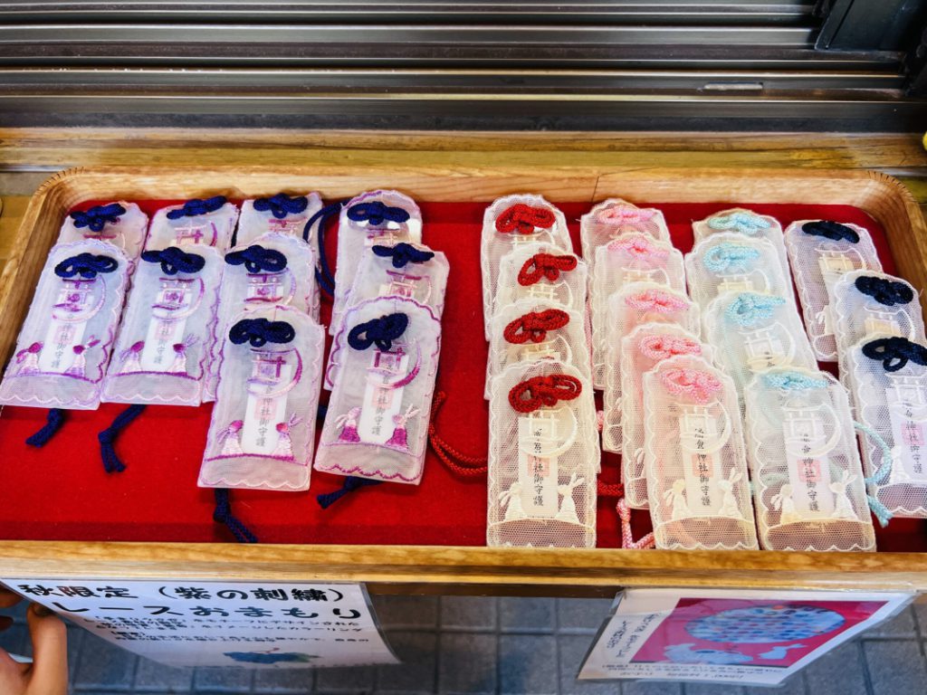 汤仓神社的御守种类丰富且设计独特,其中楠木的兔子御守与季节限定款式备受喜爱,例如春季的樱花、夏季的水蓝色调、秋季的枫叶,以及冬季的雪花及兔子图案。而近期流行的蕾丝御守、手鞠御守也都是高人气!