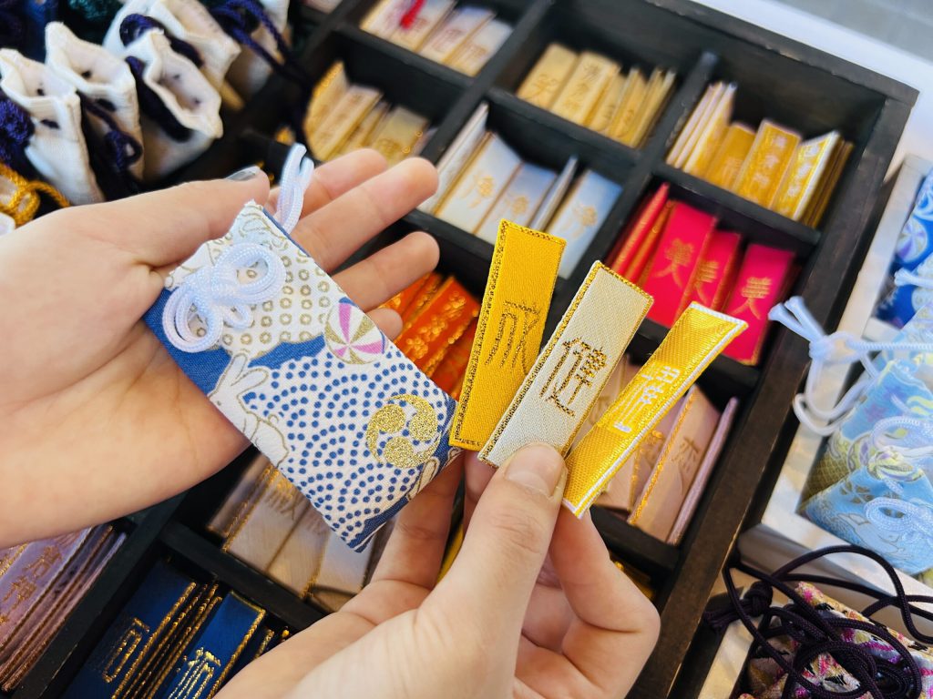 另外,在日本少见的「御神缘御守(御神縁御守)」,共 12 种御神德与 25 种御神缘袋。一种神缘袋可自由搭配组合最多三样的御神德,打造专属自己的最强御守。