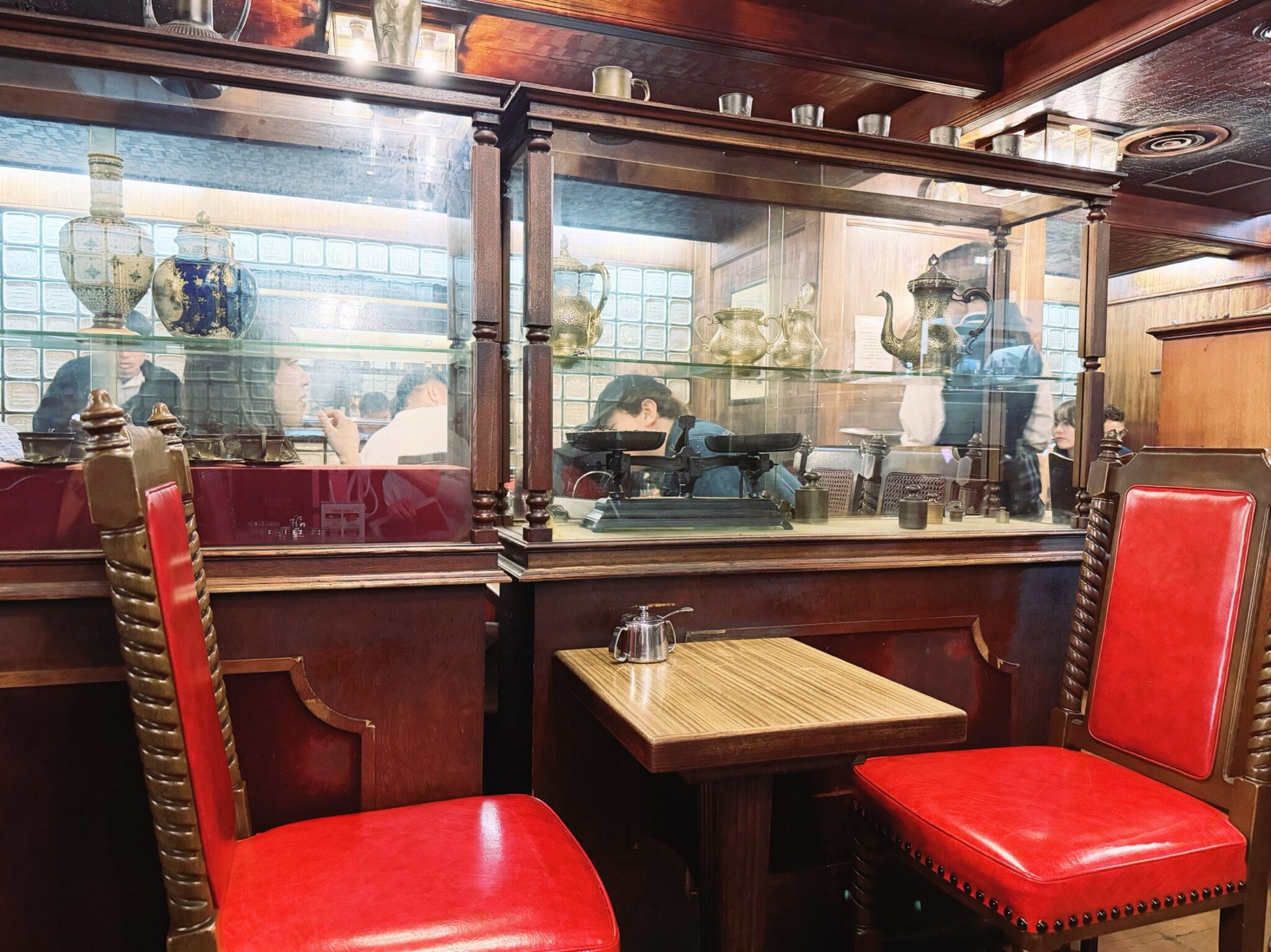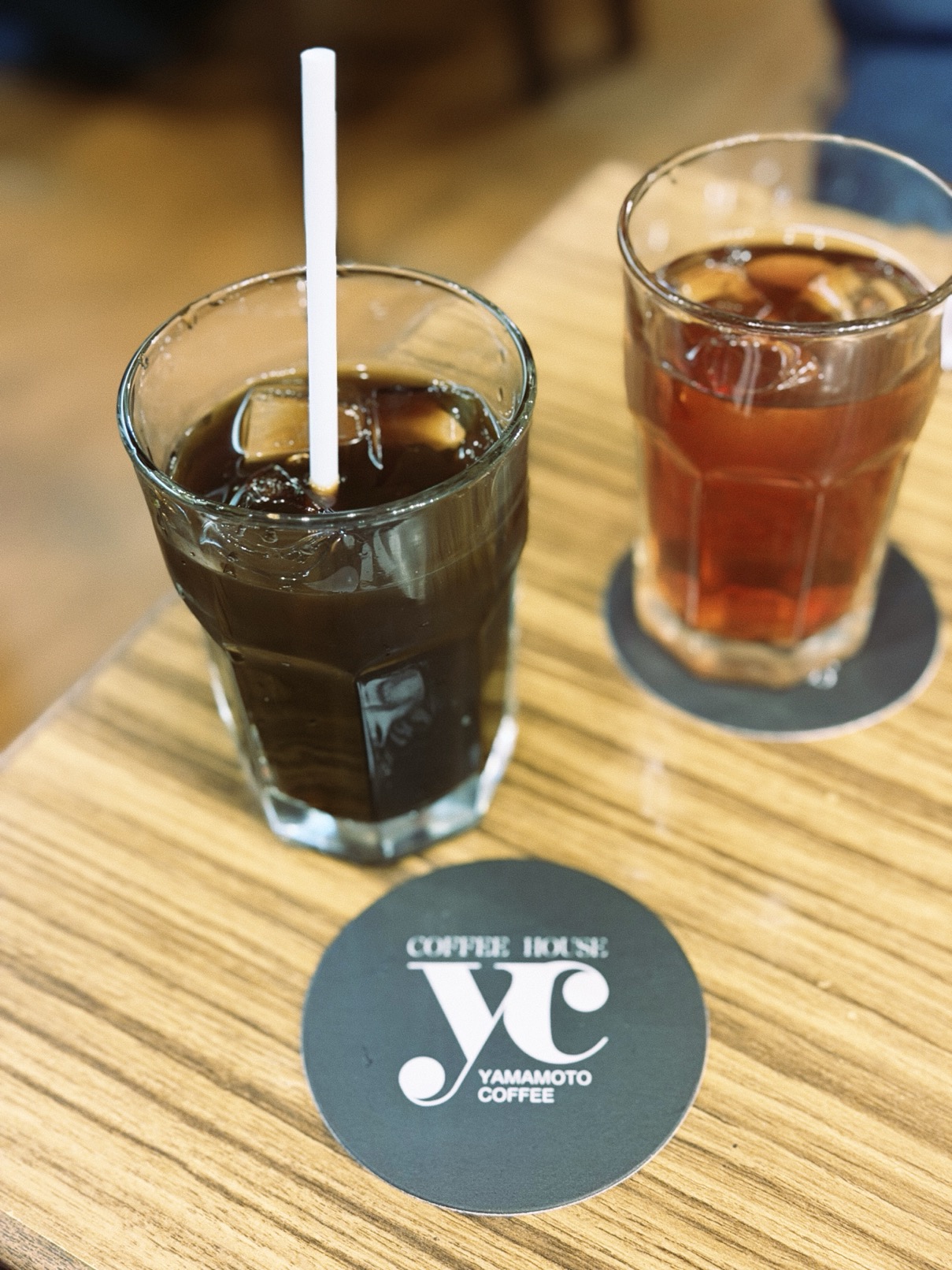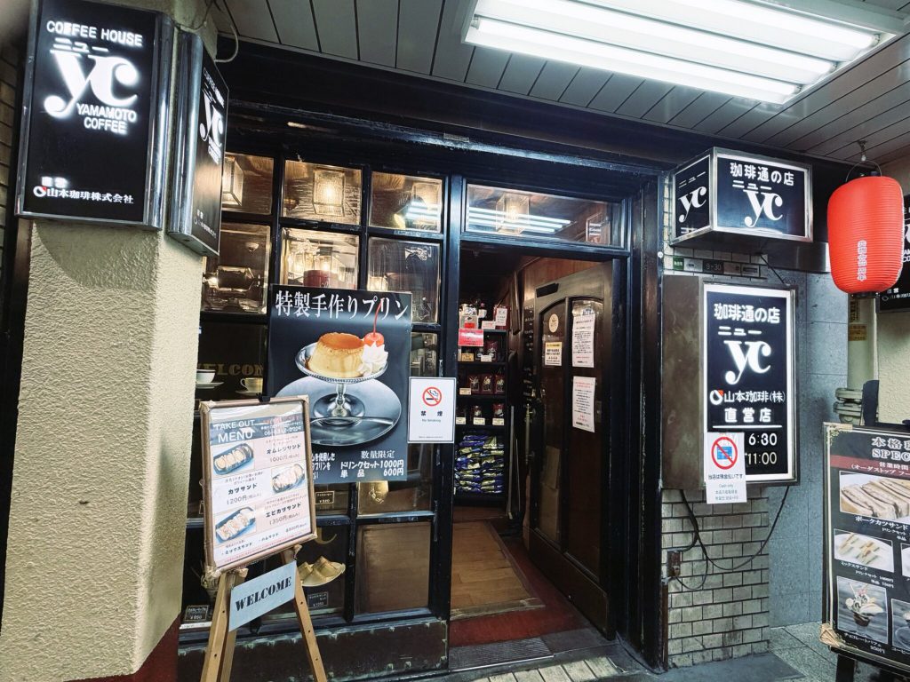 来到的是他们开设的直营喫茶店,位于新梅田食道街入口处的「ニューY・C」。「Y・C」是 Yamamoto Coffee 的缩写,店内延续昭和风格,木质装潢与老式吊灯营造出怀旧氛围。