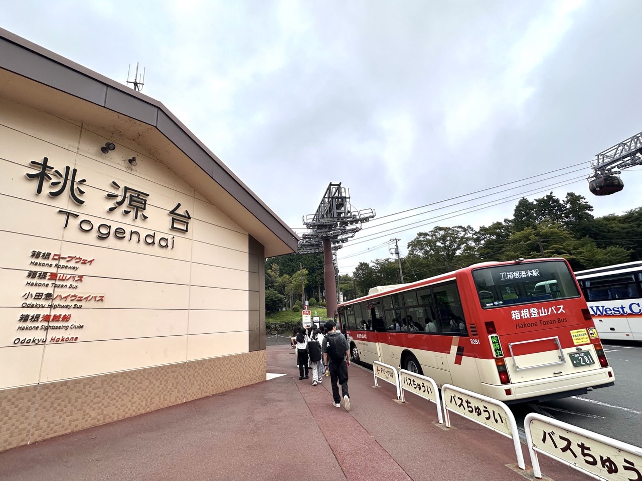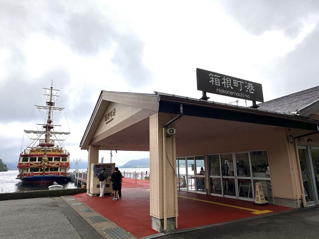 搭乘饭店接驳车回到元箱根港,原本要直接搭乘观光海贼船到「桃源台」,但没想到事与愿违,观光船因为强风和浓雾停驶了。还好「箱根町港」到桃源台的船还有运行,所以又从元箱根港搭乘约 10 分钟的公车来到箱根町港。