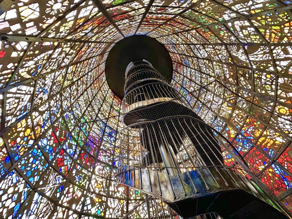在毕卡索馆附近的「鸿运交响雕塑」,高达 18 公尺,使用 480 片厚度介于 2~3 公分的玻璃。当太阳光线照射在玻璃上,玻璃会透出绚丽多彩的光芒,就像一颗颗闪闪发亮的宝石般。