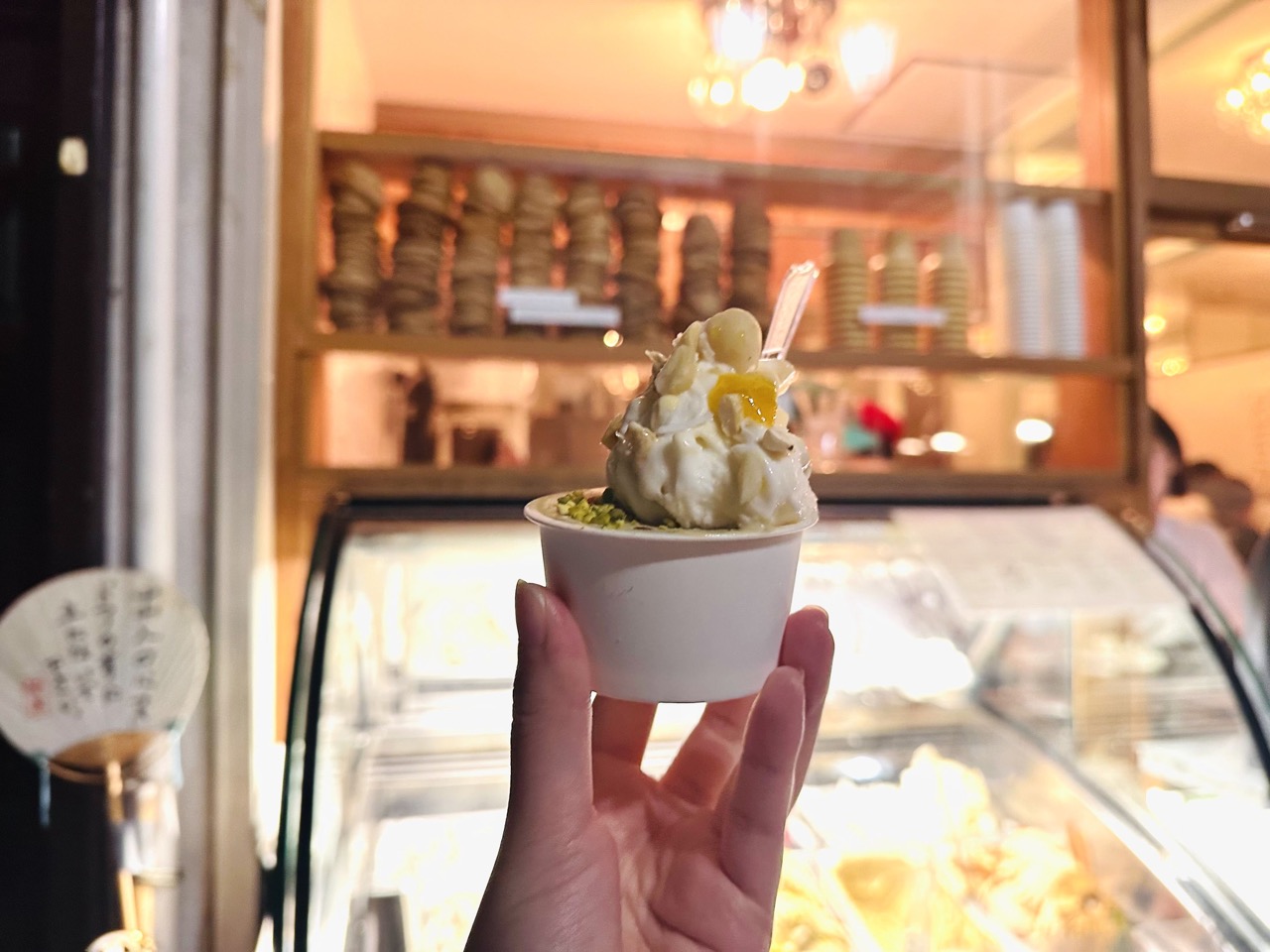 点了最人气的开心果口味,一放入嘴里,开心果的浓厚味道马上在嘴中化开,牛奶和开心果的平衡恰到好处,甜度上也控制得很好,难怪就算快到闭店时间了,店外的排队人潮不减反增。