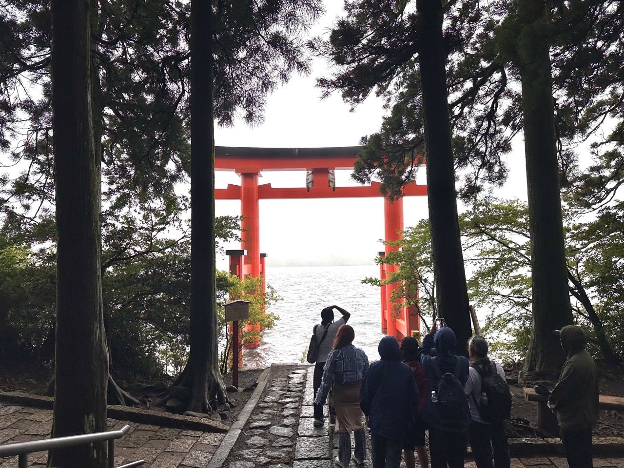 如果想在鸟居前拍照,需要稍微排队一下。若想避开人潮,建议大家提早来,不仅能轻松取景,也能更深刻地感受芦之湖与和平鸟居的静谧之美。