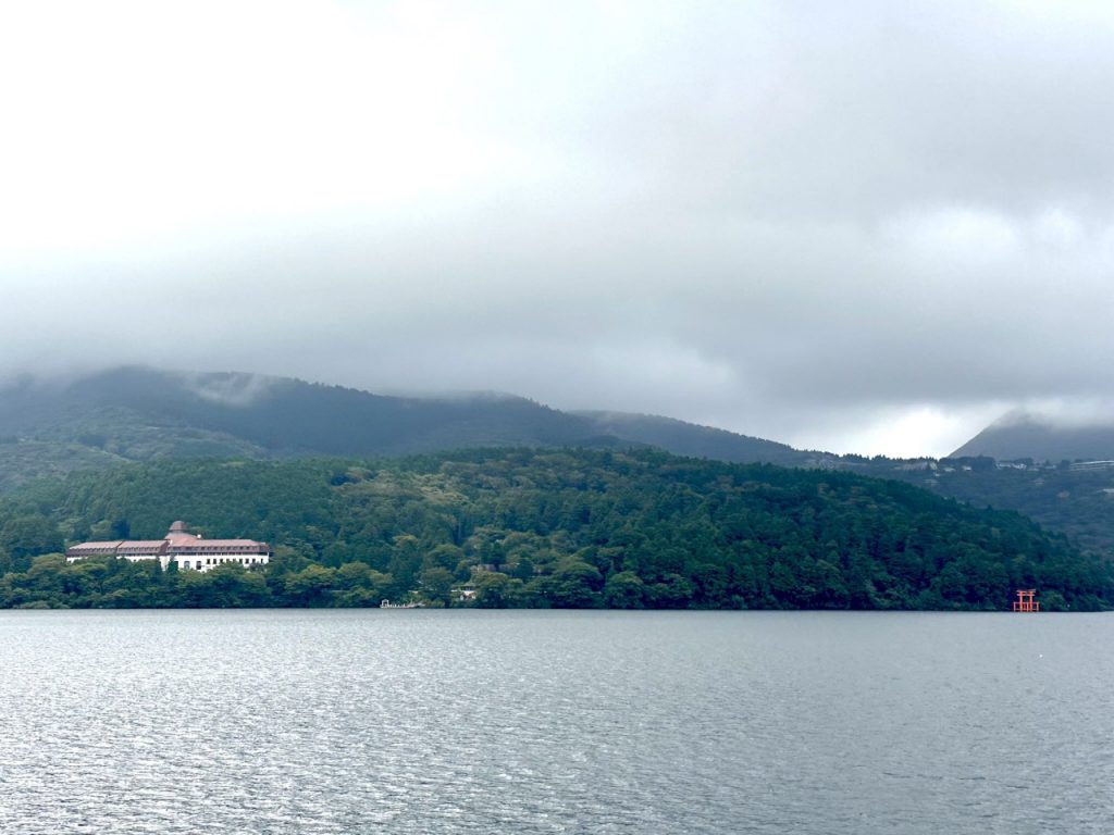 航行期间可以走到甲板上,一边吹着风、一边享受芦之湖的景色,途中还可以看到山之饭店和平和鸟居喔!天气好的话,甚至可以看到富士山,可惜当天因为天候关系,没有机会看到富士山本尊。