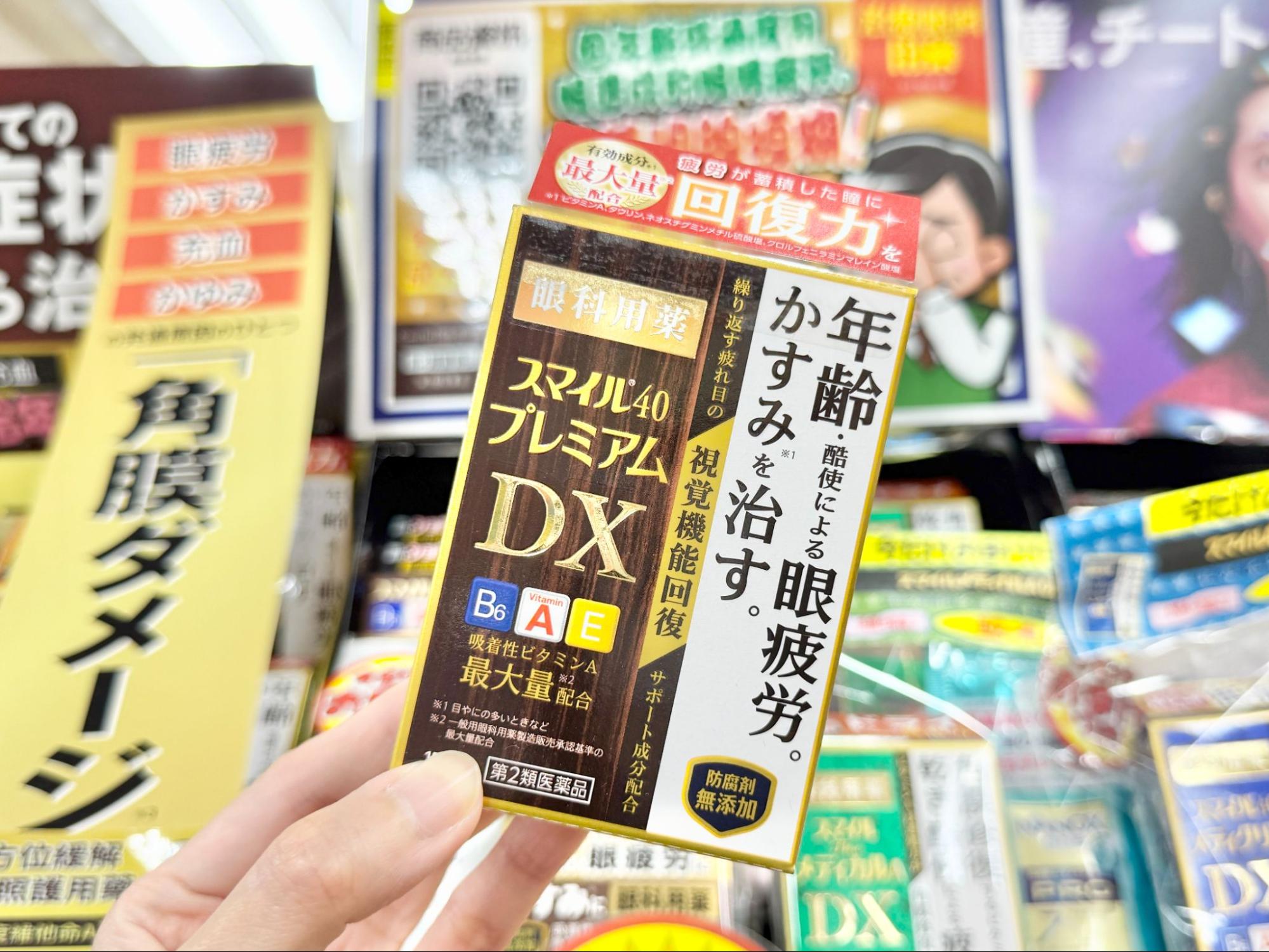 长时间使用手机或电脑的旅人一定要试试「Smile 40 Premium DX 维他命眼药水」!含维他命 A、E、B6 等多重营养成分,有效舒缓长时间用眼造成的疲劳、干涩与视觉模糊。特别针对年龄或蓝光造成的眼部不适设计,是日本药妆店长期热销的经典护眼商品。
