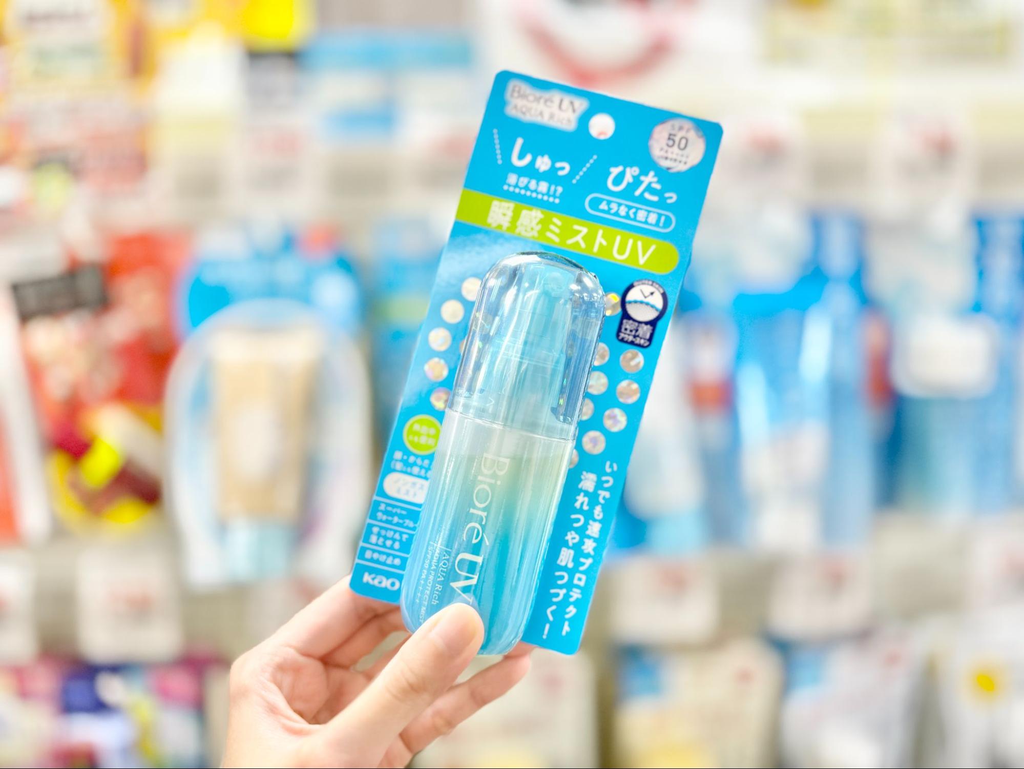「Biore UV Aqua Rich 高效水感防晒喷雾」采用水感配方与细致雾化喷头,能快速覆盖肌肤形成高效防晒膜(SPF50+ PA++++),妆后也能使用不影响妆感。轻盈清爽、不黏腻,是旅途中补防晒的理想选择。