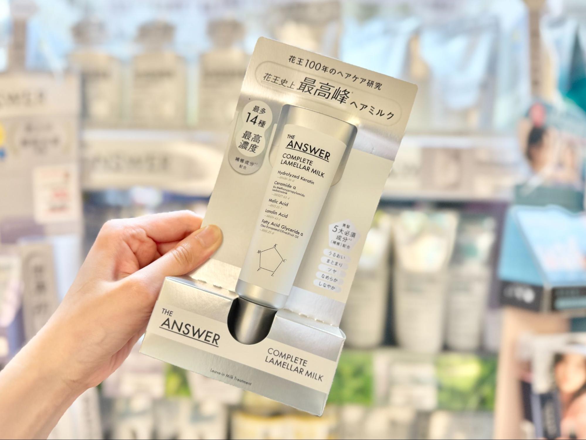 「THE ANSWER」是花王旗下品牌之一,这款「THE ANSWER 完美层膜修护乳」主打发质层膜修护科技,富含高浓度角蛋白、神经酰胺与 14 种美容成分,能在洗发后形成柔顺保湿的保护膜,修复受损发丝并提升光泽。属于免冲洗型护发乳,使用方便,香气清新不黏腻。