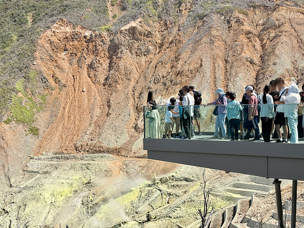 整场导览内容精彩又富知识性,向导不仅幽默风趣,还能用英文解说,就算不懂日文也能轻松参与。途中还会带大家实际看看黑玉子是如何透过地热与温泉水煮制而成的,从产地看到制程,非常有趣也让人印象深刻。如果你有机会来到箱根大涌谷,小编真心推荐一定要体验这段自然研究路,这种能亲眼见证火山力量、又能学习知识的机会真的不多见!