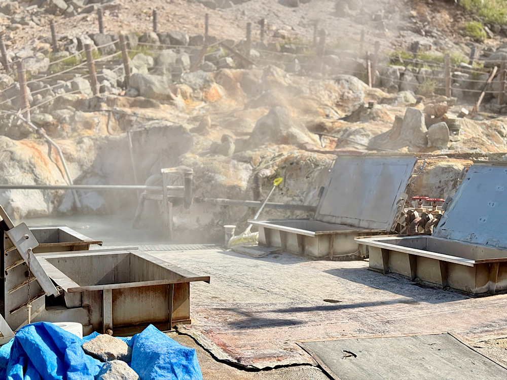 其中最不能错过的,就是现场贩售的黑玉子(黑色温泉蛋)。这些黑玉子是直接使用大涌谷的地热温泉现场煮制而成,因为泉水中含有成分让蛋壳变成独特的黑色。