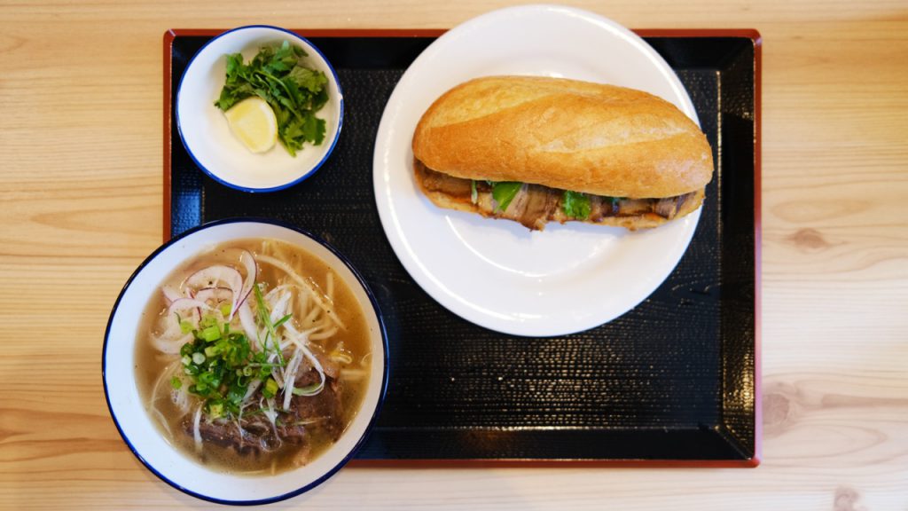 需要注意的是,营业时仅有周一至周六 10:30~16:00,不过也因此不会错过这里划算的商业午餐「迷你越南河粉搭配可自选馅料的越南面包(バインミー)」,只要 1290 日元!号称「迷你」的份量,却一点也不迷你!河粉肉片使用的部位,还是令人怀念的牛腱肉,大大满足!