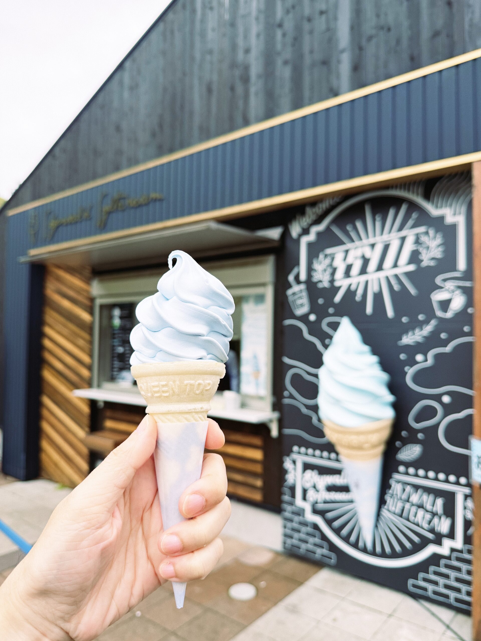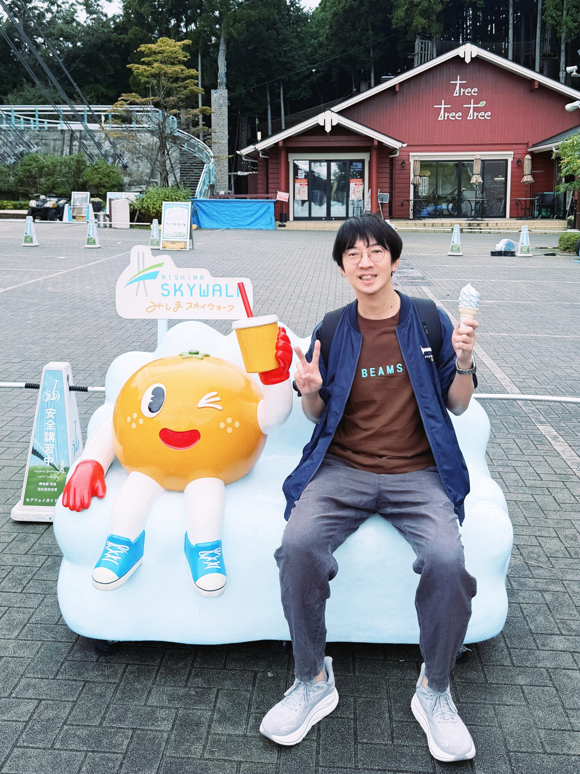 三岛天空步道限定的「SKYWALK SOFTCREAM(空色霜淇淋)」则是不容错过的饭后甜点。特色是以吊桥为灵感打造的「天空蓝」外观,柔和的蓝色象征晴空与云海。本来看颜色,我以为是薄荷口味,但其实是带着浓郁的奶香味。原来,这款冰品是以富士山麓牧场「いでぼく」的布朗瑞士种牛乳制成,口感滑顺,相当好吃。