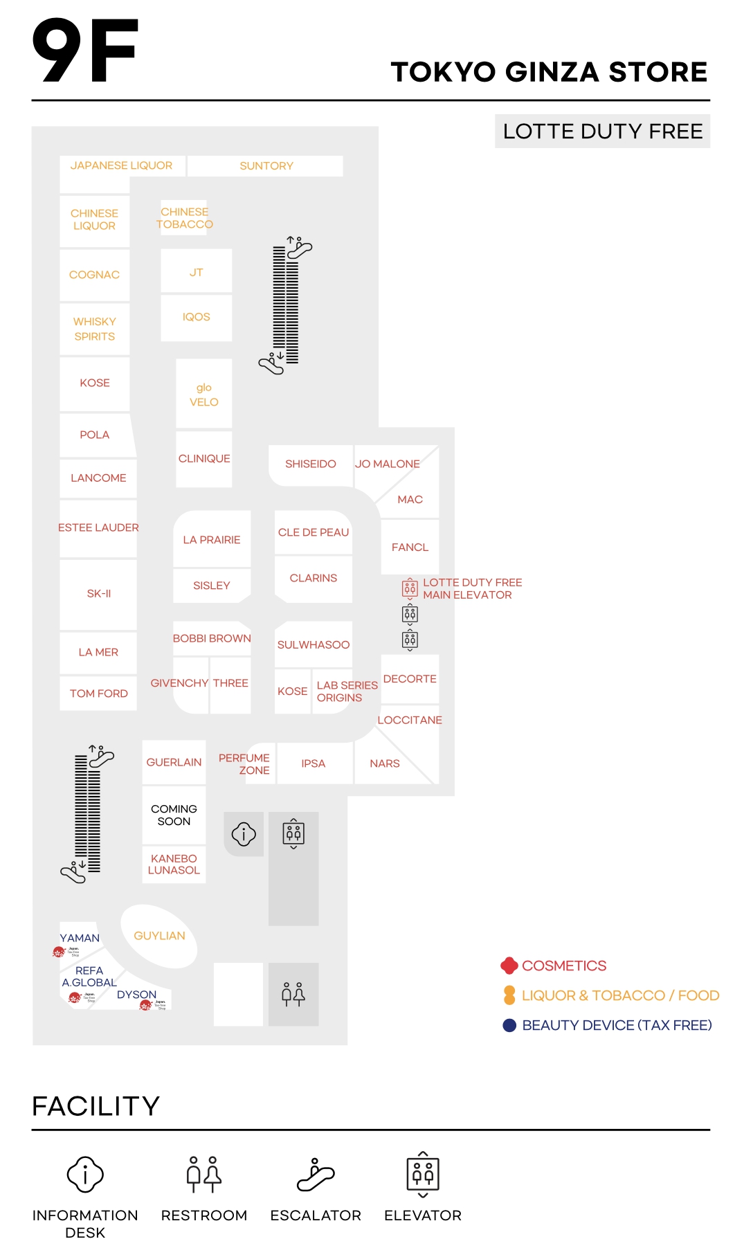 「银座乐天LOTTE免税店」位在「银座东急广场(TOKYU PLAZA GINZA 東急プラザ銀座)」的8楼与9楼,是东京都内最大的市区免税店。位于JR有乐町站及东京Metro地下铁银座站,出站后步行3~5分钟即可抵达。