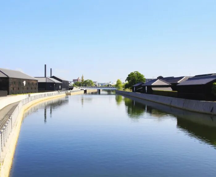 从名古屋搭电车前往半田,这里自江户时代就是爱知县的酿造重镇。沿着半田运河散步,一排排黑色板围起的仓库静静排列,营造出充满历史气息的景观。