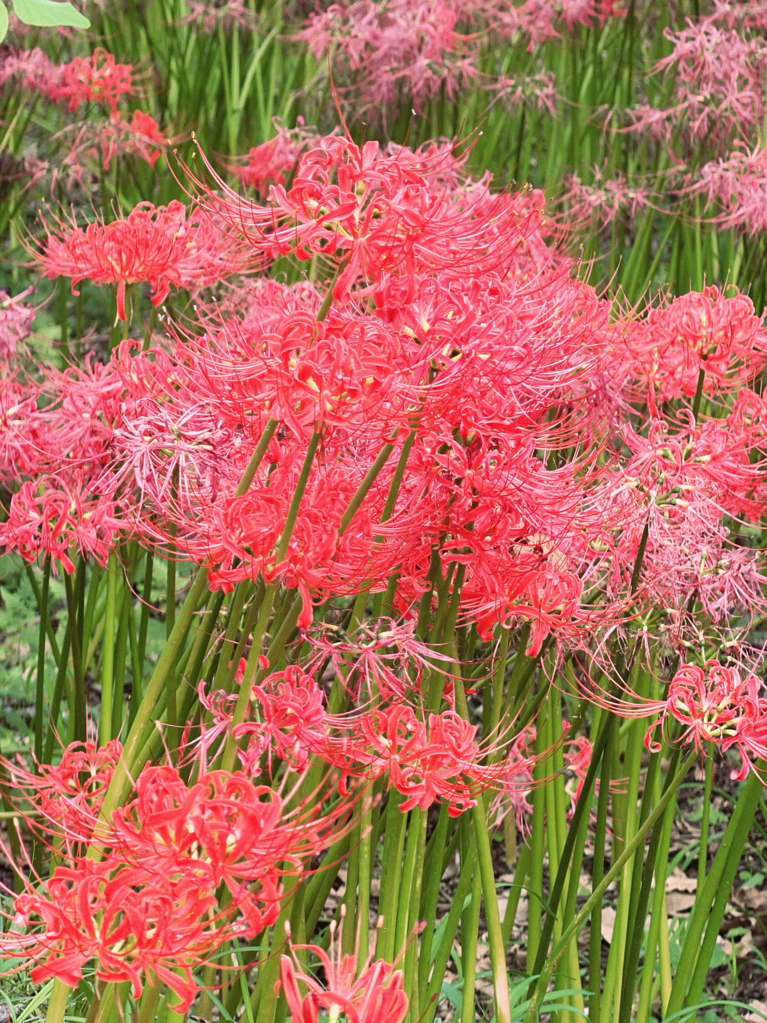 「曼珠沙华」这四个字源自佛教梵文,意指天界降下的吉祥之花。后来日本以此指称秋天盛开的彼岸花,国内多称「石蒜」,韩国则以「相思花」唤之。名字不同,背后的传说却都带着相似的哀愁。相传曼珠沙华花叶不相见,叶生时无花,花开时无叶,因此常象征着无法相会的恋人,也象征着离别、思念,以及跨越彼岸的祝福。