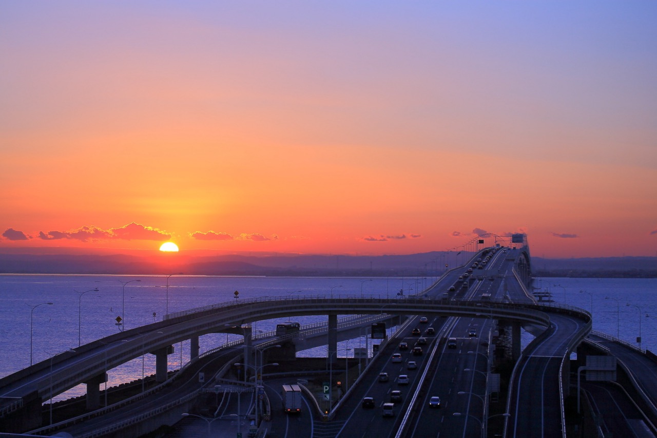 位于千叶县的「海萤停车区(海ほたる)」,位于东京湾跨海大桥上,提供观赏日出的极佳视角。这个位于东京湾上的美丽停车区,不仅交通方便,更拥有壮丽的海景。
