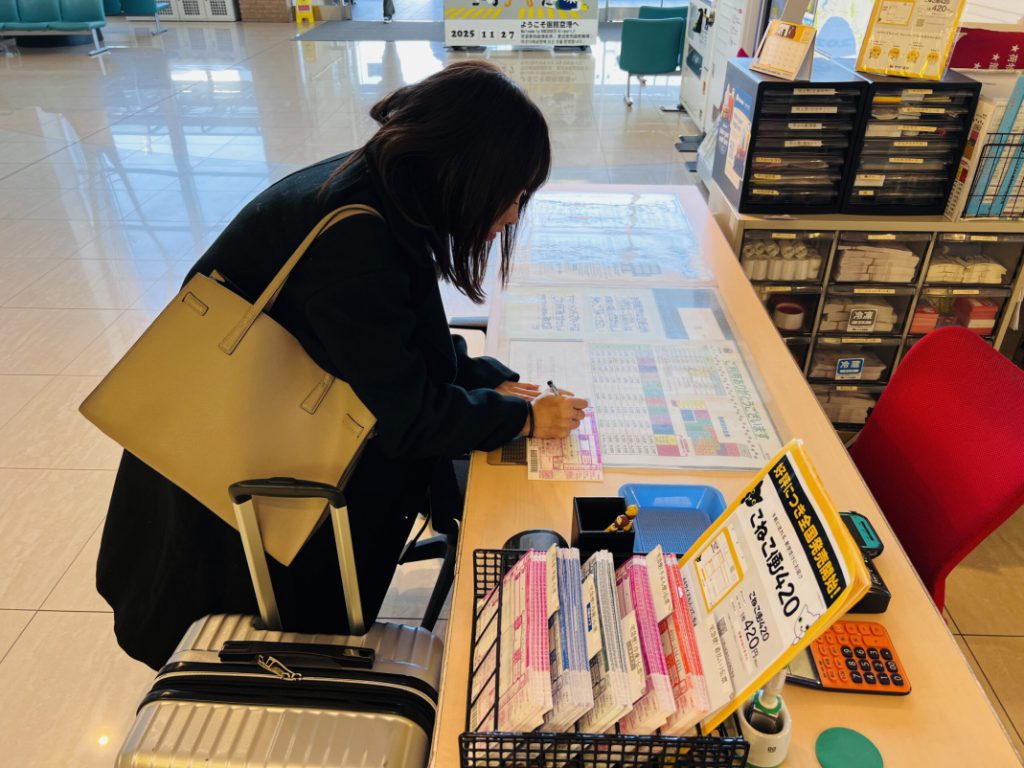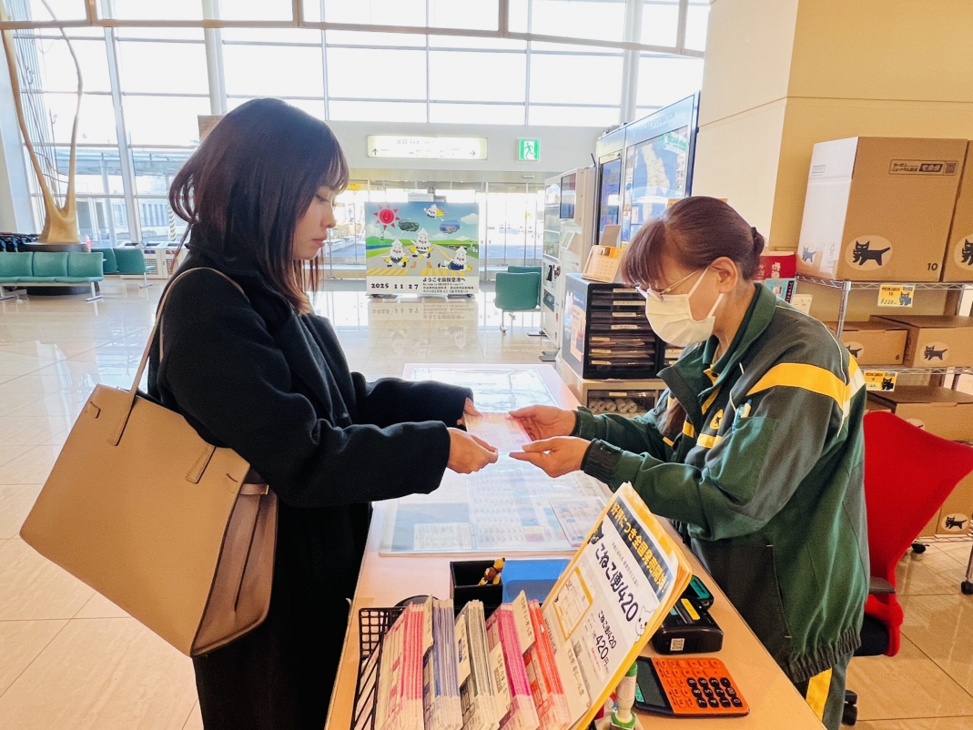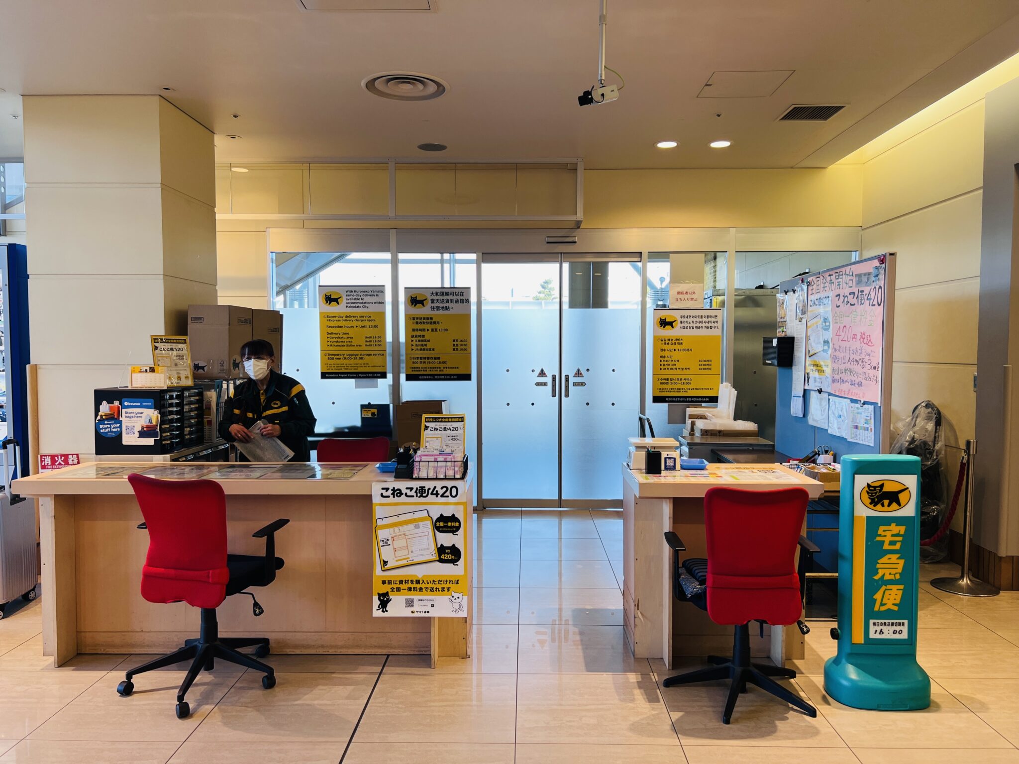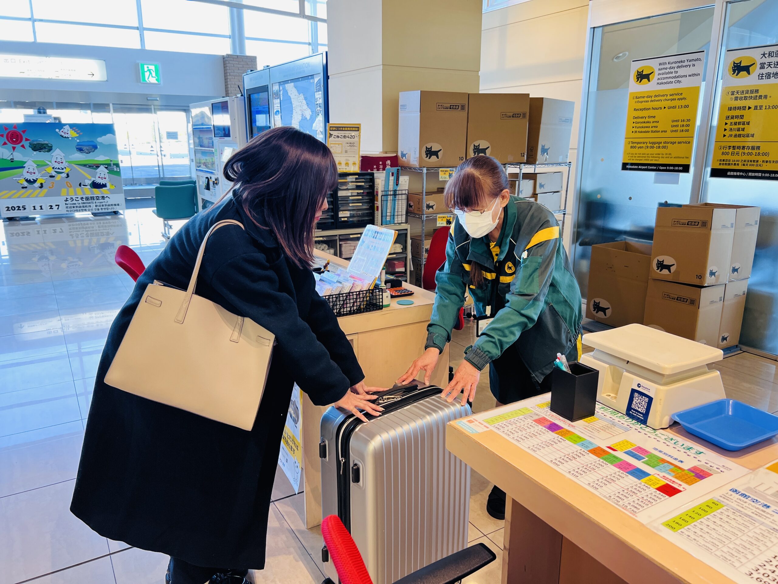 抵达函馆机场国际线大厅 → 步行至国内线1楼的黑猫宅急便 → 填写寄送行李资料 → 付款 → 轻松空手观光 → 返回饭店即可领取行李。
