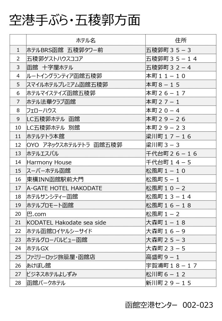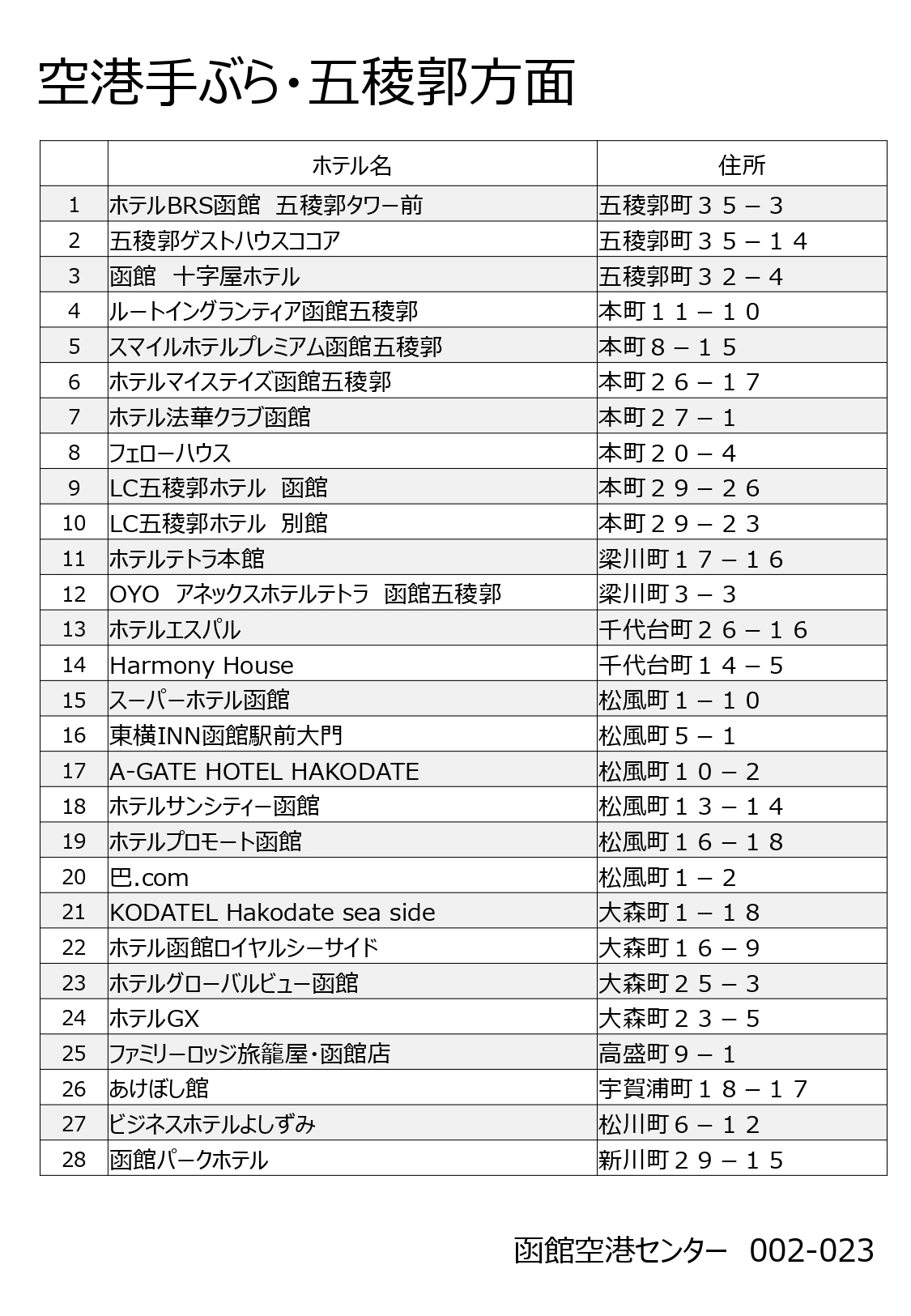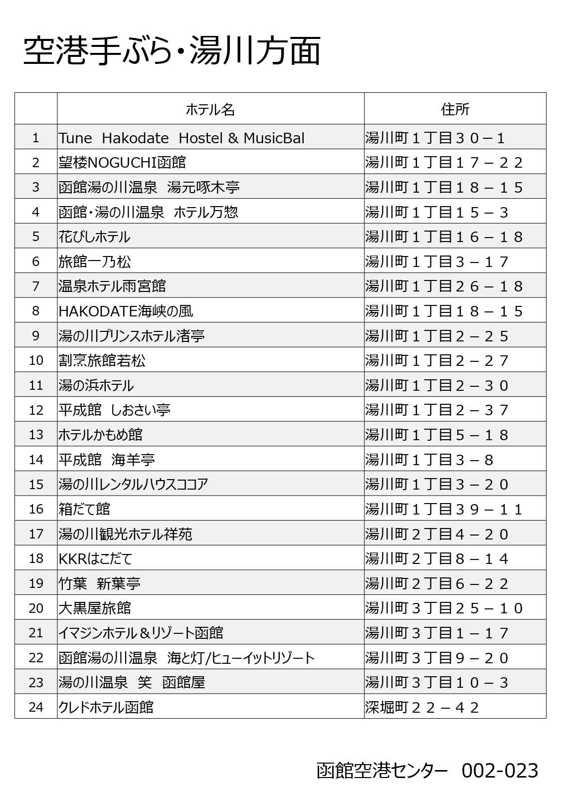 可提供「函馆机场→住宿饭店」寄送服务的饭店列表