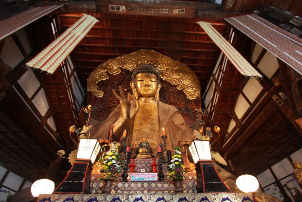 位于岐阜市的「正法寺」,是创建于 1683 年的黄檗宗古寺,寺内供奉的「岐阜大佛(岐阜大仏)」雄伟壮观,与奈良大佛与鎌仓大佛并称「日本三大佛」,在漆箔佛像之中更是日本全国最大,佛身高达约 14 公尺,抬头仰望时能感受到静谧而震慑的气场。