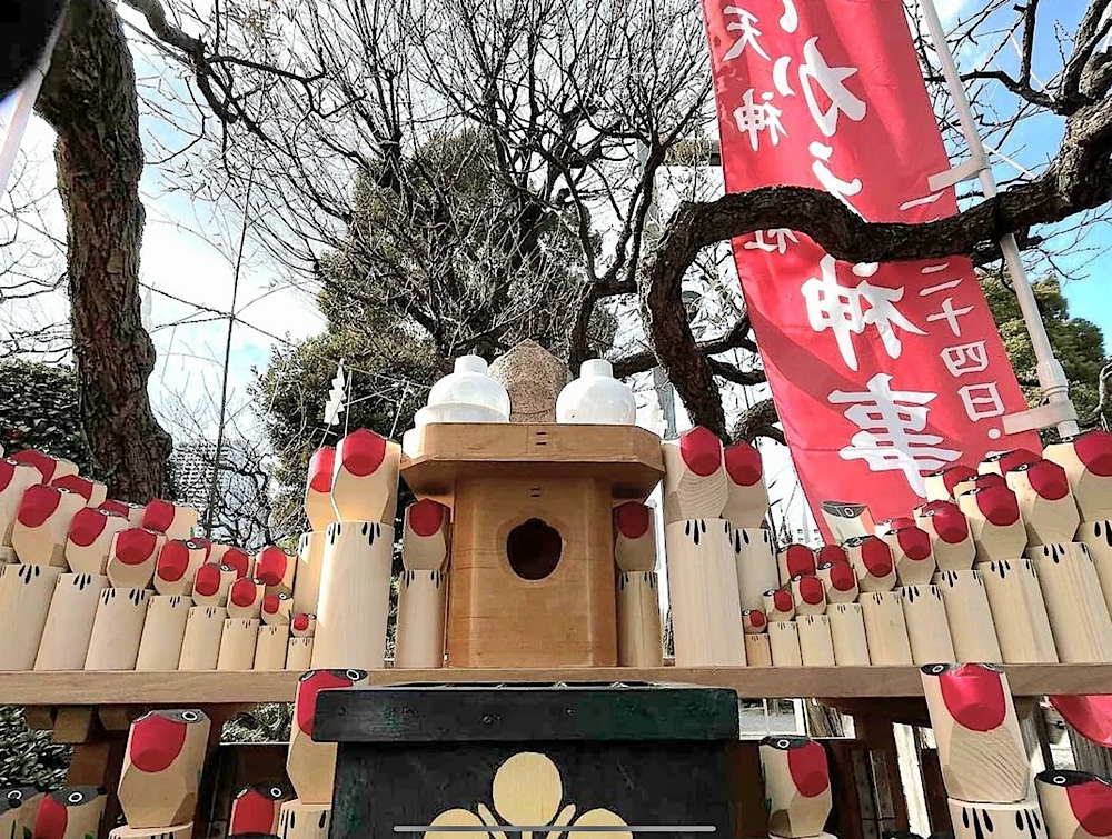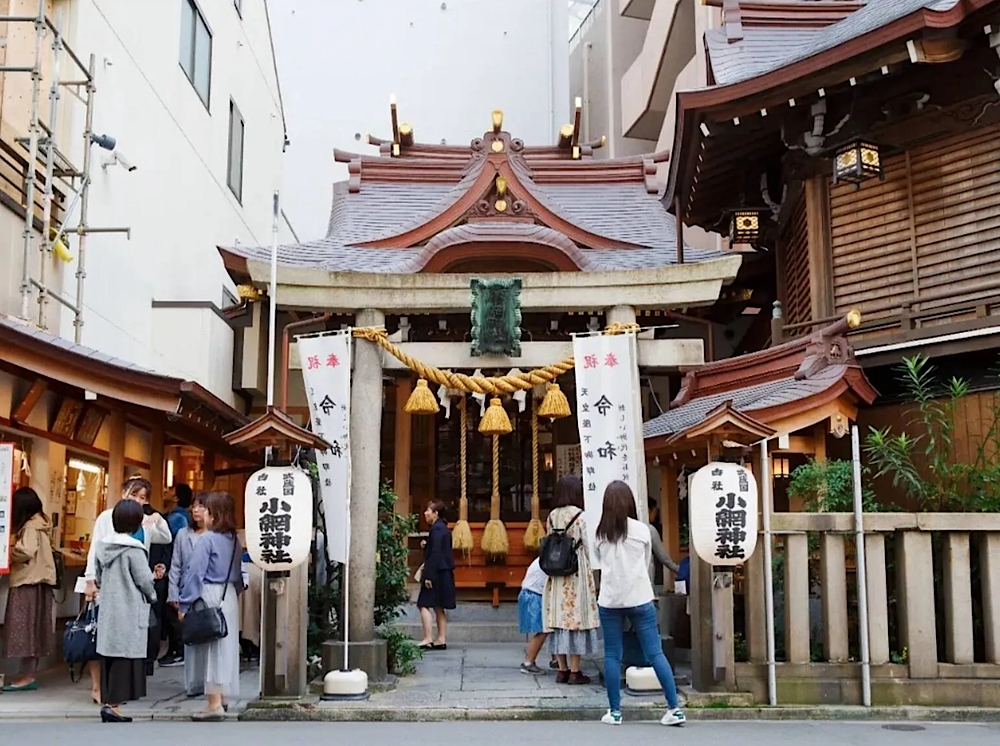 位于人形町地区的神社,周边是融合了下町风情的商店街和办公楼,其历史可以追溯到室町时代中期,创建于1466年。该神社的建筑在东京大空袭中幸存,并以战争期间携带神社护身符的士兵平安归来而闻名,因此被尊称为「强运厄除之神」。
