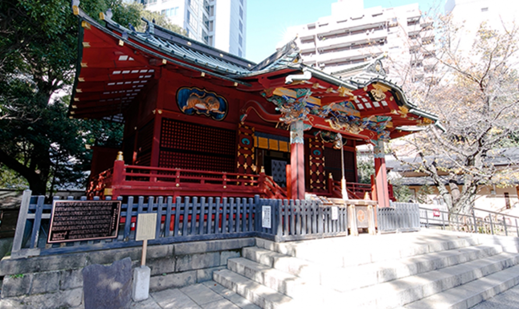 建于 1005 年的神社,位于都心的办公区。这座神社供奉着伊势神宫的神明,即「天照大神」和「丰受大神」,因此被称为「关东的伊势神明」而受人尊崇。虽然现在这座神社以获得良缘而受到女性喜爱,但由于位于办公区,同时也以促进商业繁荣而闻名。