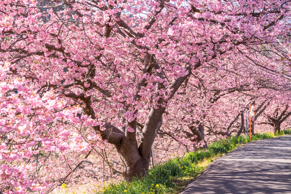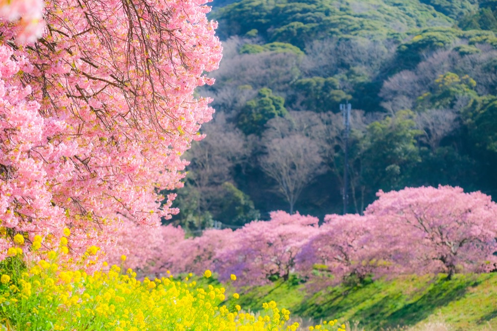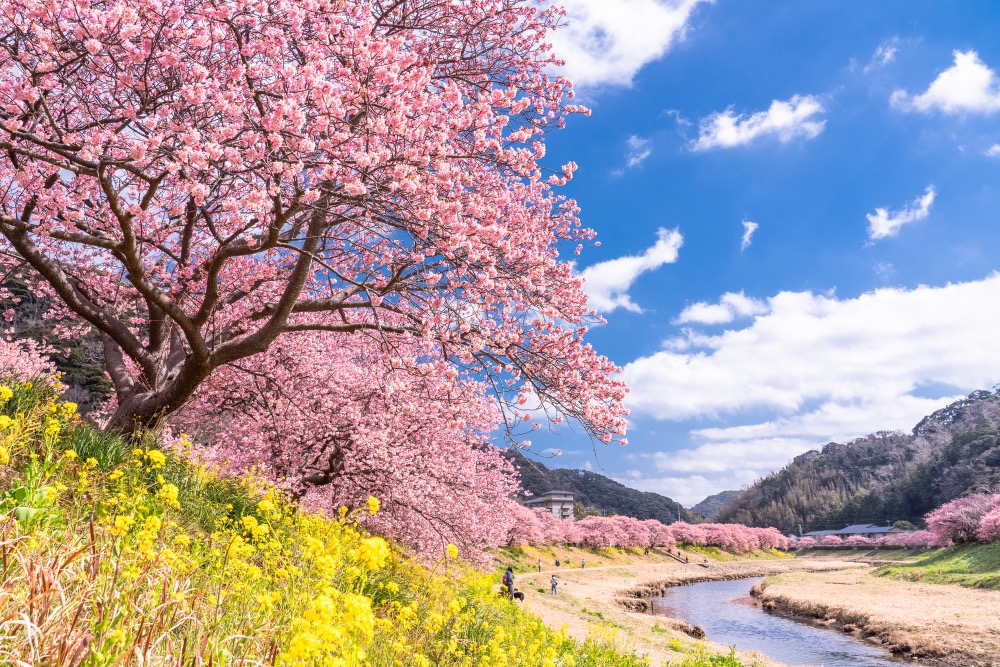 河津樱花祭被誉为日本最早的赏樱之旅,由于伊豆温暖的气候,河津樱每年在 2 月中旬达到满开,在稍有凉意的 2 月,能够欣赏到盛开的樱花,实属难得!与此同时,随着河津樱的绽放,周围的金黄油菜花将同步盛开,整个地区的风景色彩缤纷,粉红与暖黄的和谐对比,让人心旷神怡。