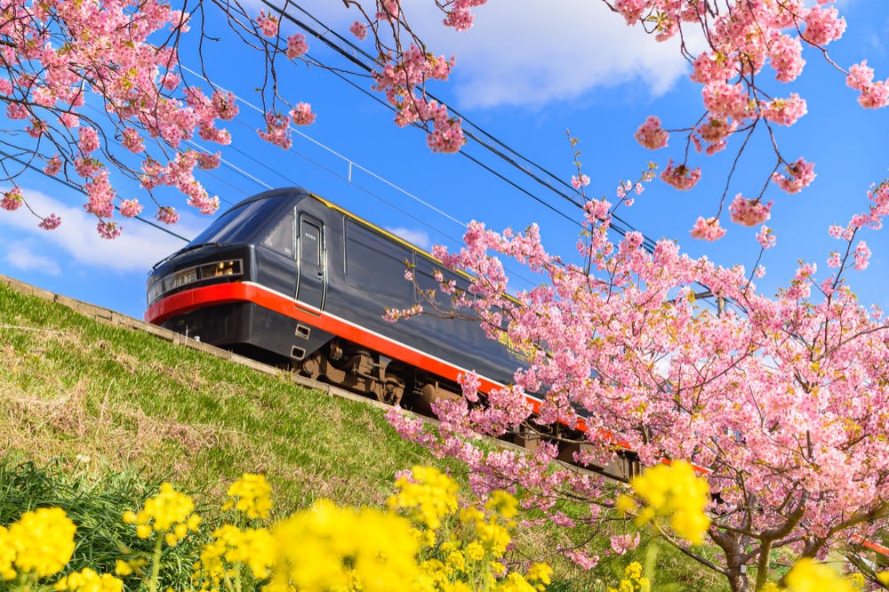 每年 2 月中、下旬,从京滨急行线「三浦海岸」车站出发,沿着铁轨步行约 1 公里前往「小松池公园」,道路两侧约 1,000 株河津樱盛开,梦幻的粉色樱花隧道与一旁金黄的油菜花相互辉映,还能近距离欣赏京急电车疾驶而过,是三浦海岸极具代表性的春季景色。