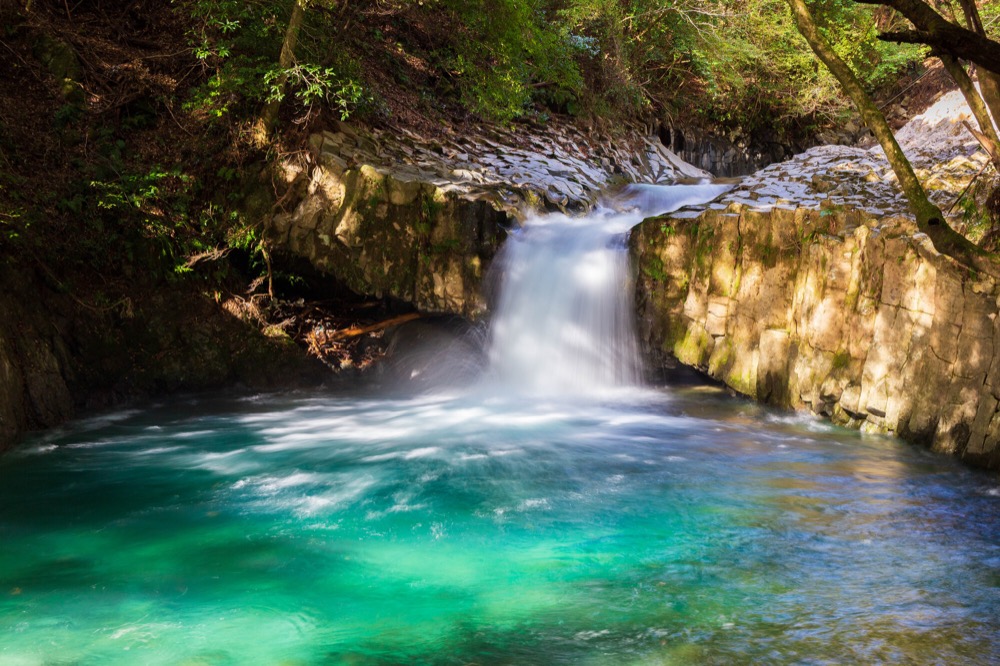 「河津七瀑布(河津七滝)」匯聚「大瀑布(大滝)」、「出合瀑布(出合滝)」、「螃蟹瀑布(かに滝)」、「初景瀑布(初景滝)」、「蛇瀑布(蛇滝)」、「海老瀑布(海老滝)」、「釜瀑布(釜滝)」等 7 个瀑布,清澈溪水顺流而下,壮丽景观令人赞叹。