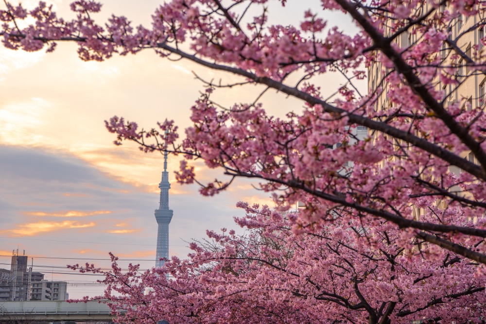 来东京,不可错过的浪漫景点之一,就是位于「东京晴空塔(東京スカイツリー)」附近的「东武桥」,横跨于清流旁,是赏河津樱的绝佳地点。每年 2 月下旬至 3 月上旬,这座桥附近绽放着早开的河津樱,与壮观的晴空塔共同演绎自然和现代融合的绝景。
