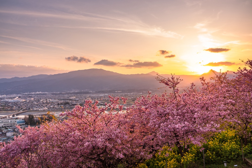 神奈川县松田町的「西平畑公园」是令人陶醉的赏樱胜地,以其美不胜收的河津樱、金黄的油菜花,以及壮丽的富士山景观闻名。每年 1 月下旬至 3 月上旬,约 360 株河津樱在这片土地上缤纷盛放。
