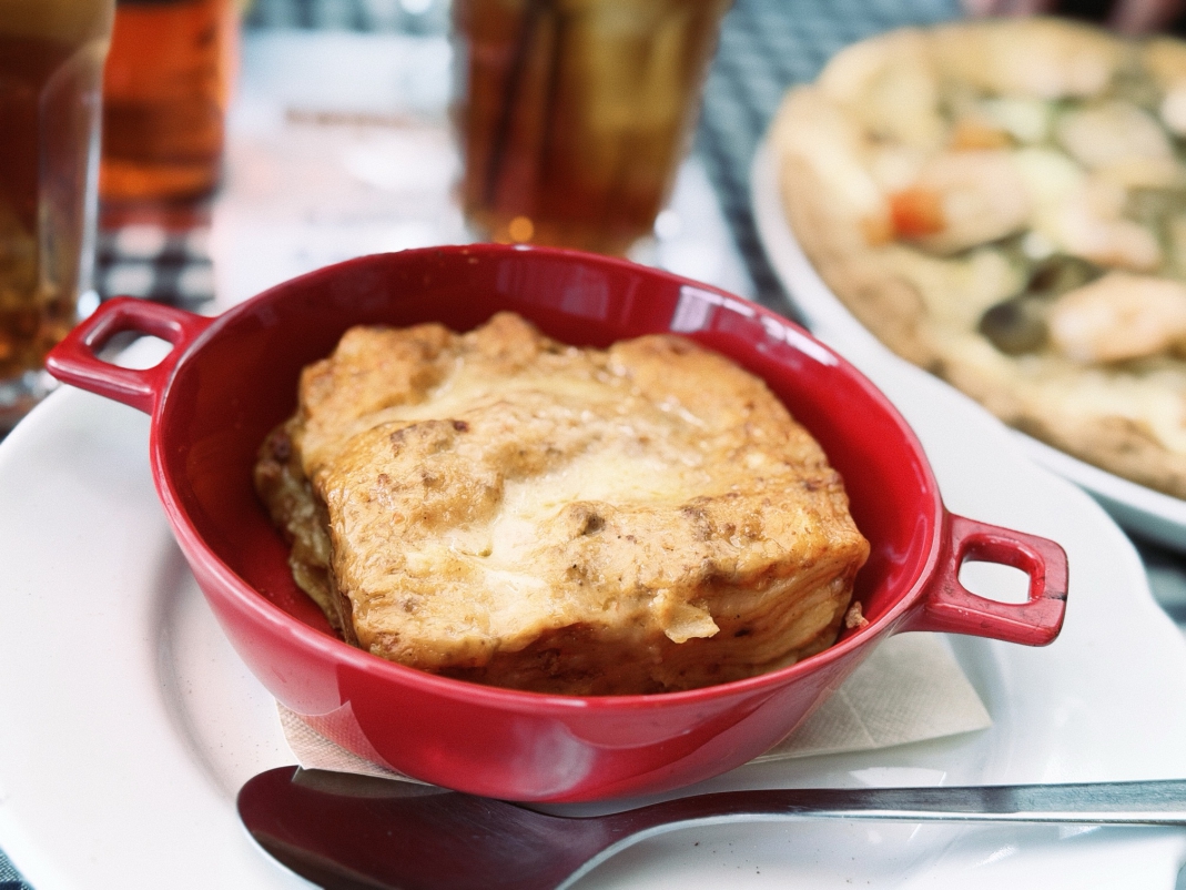 现烤披萨和千层面都很推荐。饼皮带有恰到好处的嚼劲,配料份量不手软。像是鲜虾与蘑菇口味,海味与菇香相互衬托,吃来清爽;焗烤千层面则走浓郁路线,起司香气饱满,适合想吃得满足的时候点上一份。