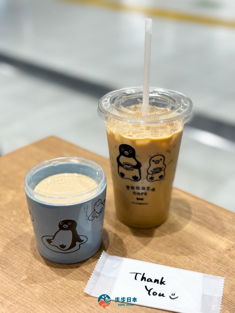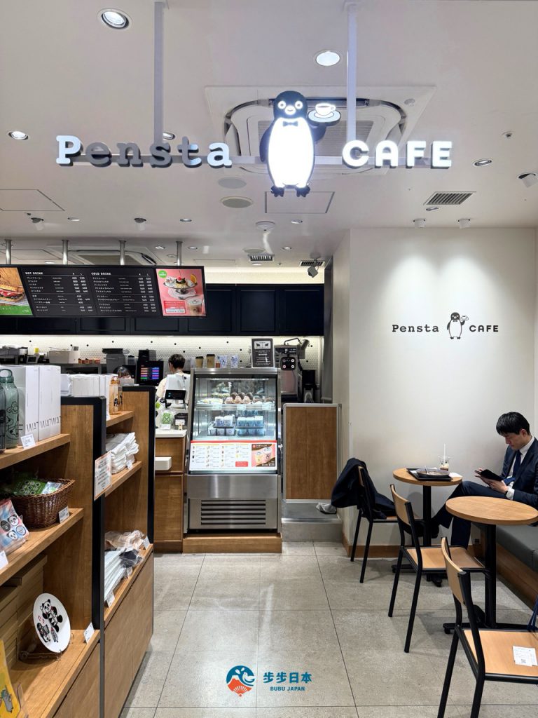 实际走进 Pensta,会发现这里并不是常见附设在车站内的小型咖啡店,而是完整规划的主题空间。店内分为咖啡厅区与商品贩售区,两个区域相邻设置,可以坐下来点杯饮料、吃点甜点,还陈列着各式 Suica 企鹅周边商品。即使原本只是利用转车空档进来逛逛,很容易不小心多停留,更会不小心就荷包失守!